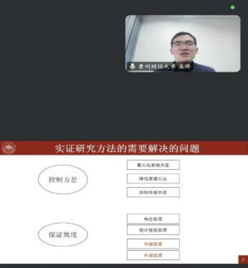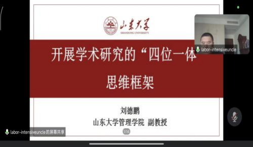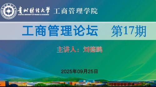 2025年9月25日,贵州财经大学工商管理学院举办了第17期工商管理论坛,邀请了山东大学管理学院副教授刘德鹏开展主题为“开展OBHRM学术研究的四位一体思维框架”的学术讲座。讲座以线上腾讯会议的方式举行,由工商管理学院王侨副教授主持,100余名师生参加。