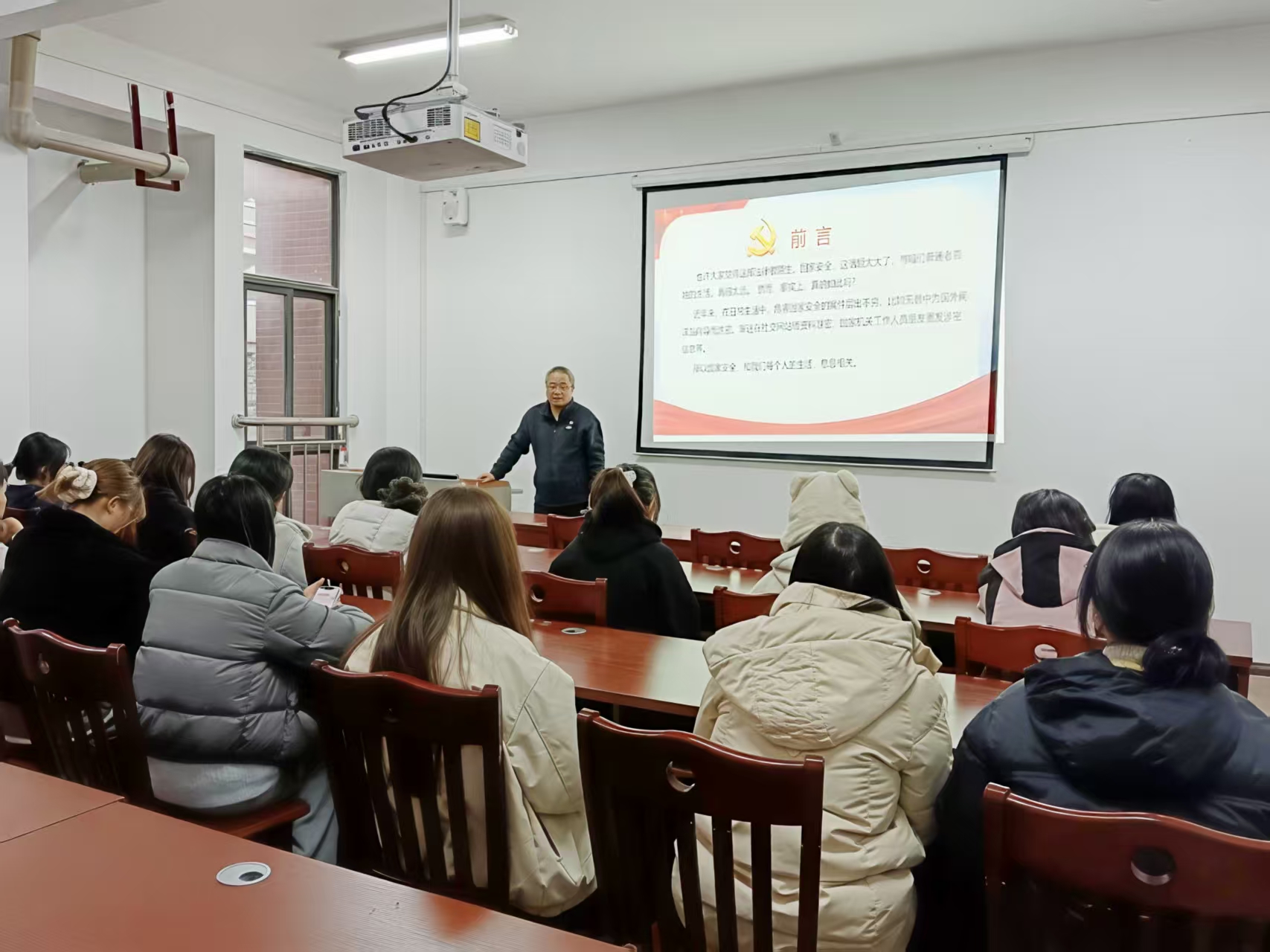 为深入贯彻落实总体国家安全观,响应国家新时代国家安全宣传教育号召,切实提升大学生国家安全意识与风险防范能力,2025年11月18日下午,工商管理学院“兵锋”校园志愿服务队在翠竹苑三栋四楼活动室举办“筑牢安全防线,青春守护家国”学生社区国家安全主题宣讲活动。